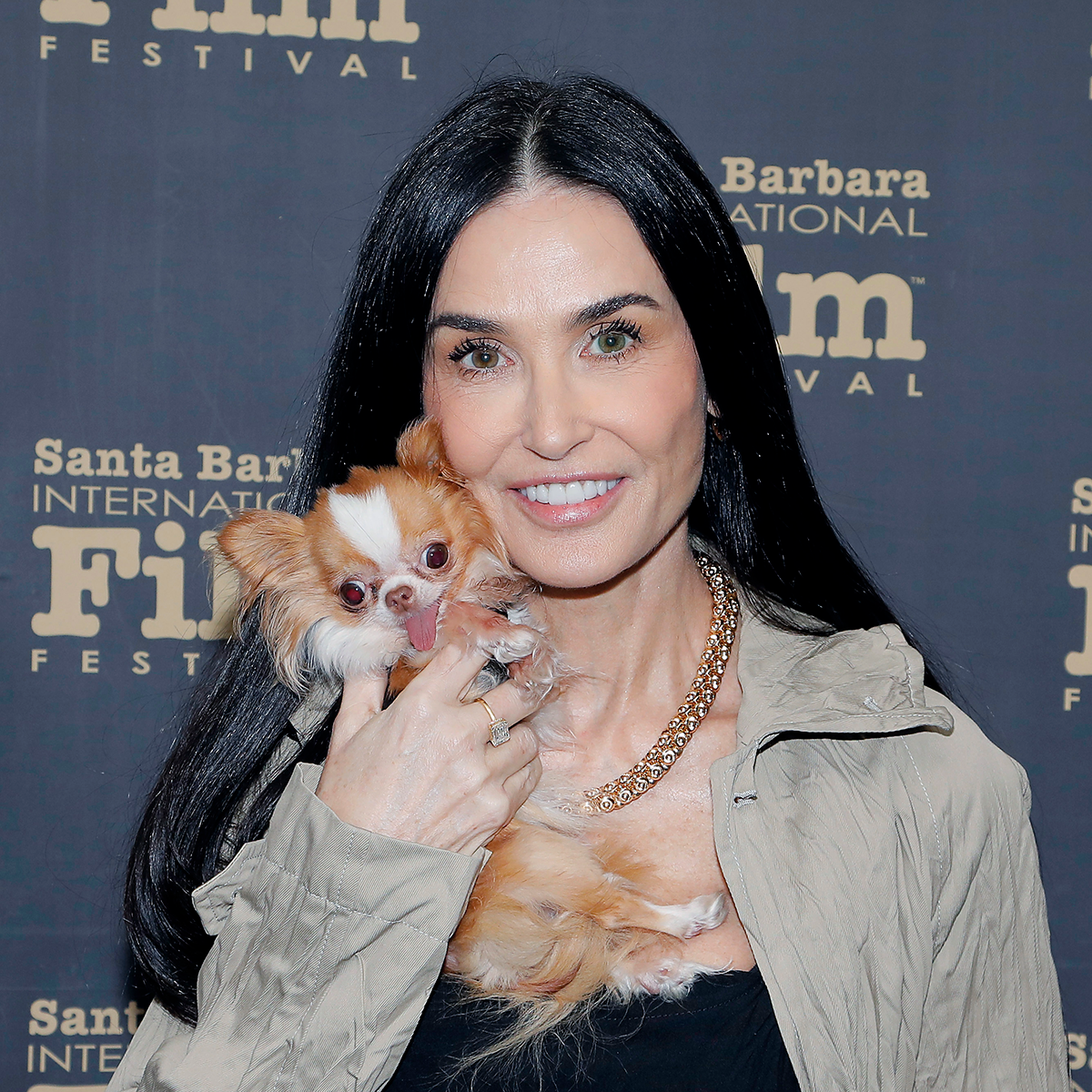 The Ghost star also wore black pointed-toe stilettos and completed her ensemble with dark black sunglasses and a black purse. Of course, her most iconic accessory was her tiny Chihuahua, Pilar, who she cradled in her hand while posing for cameras.